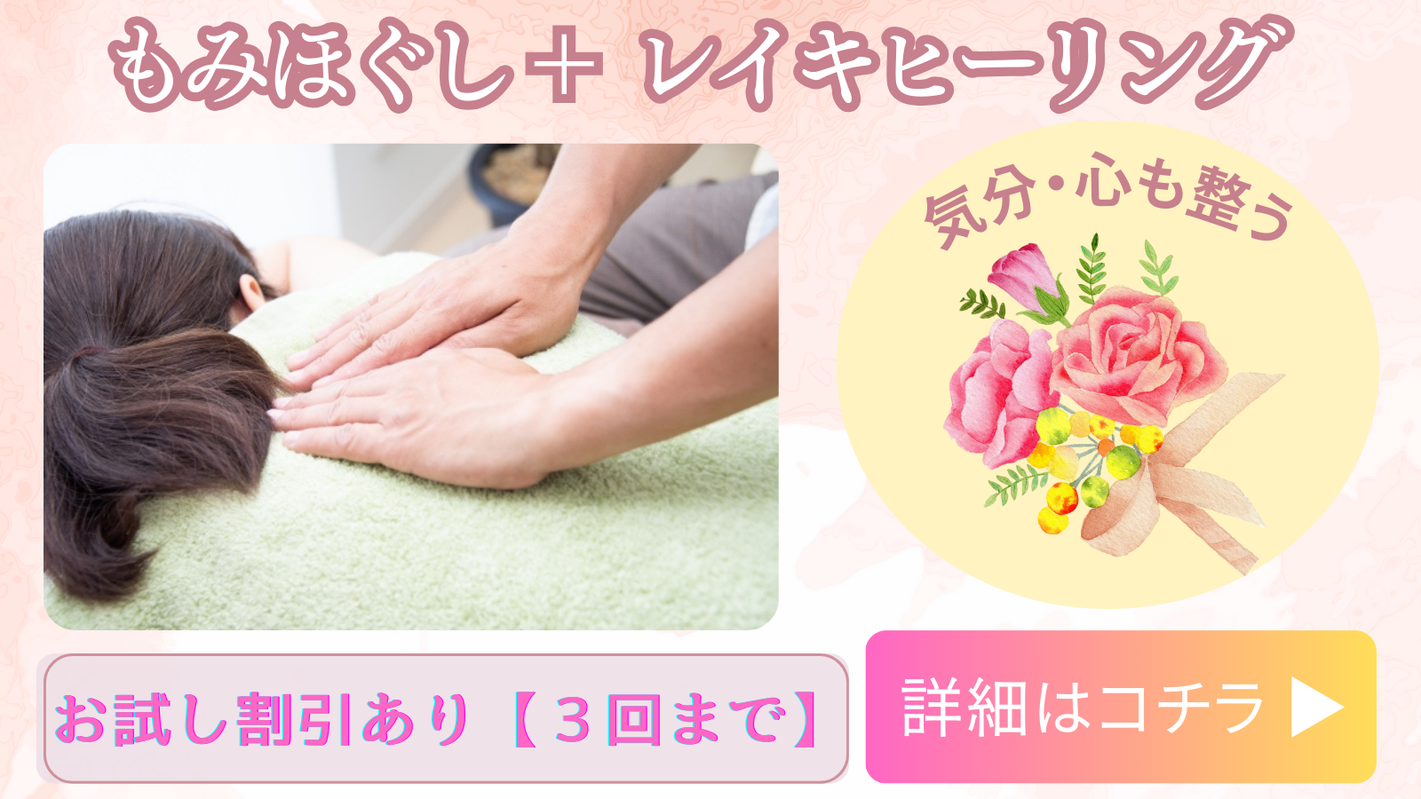 ・70分・7,700円 ※ もみほぐし+レイキヒーリング